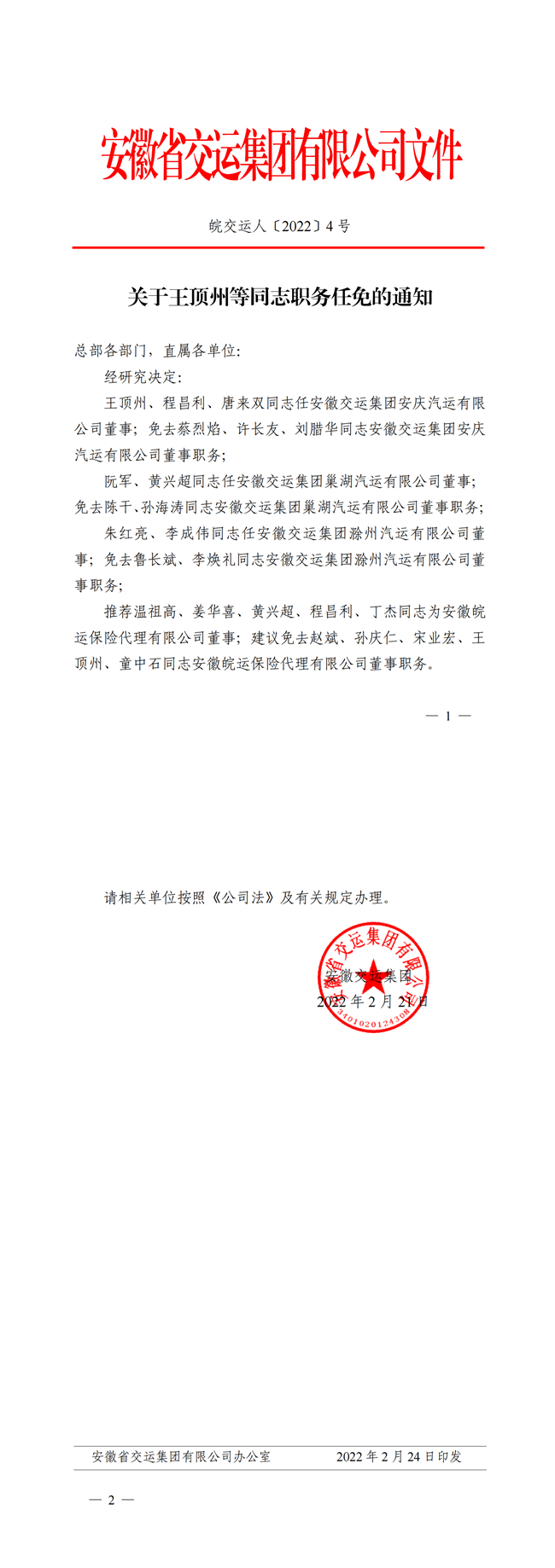 關(guān)于王頂州等同志職務(wù)任免的通知